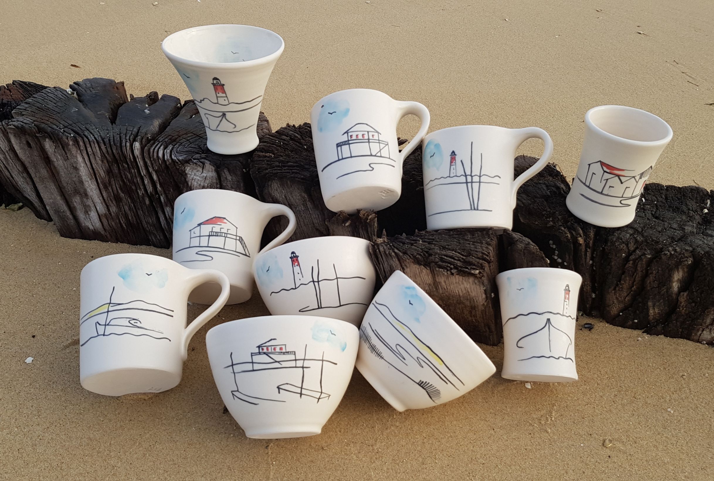 Dans cet ensemble, vous pouvez voir différentes pièces: mug, tasse à café, verre et coupelle en forme de pot de résine. Je peux réaliser toutes ces formes dans les différents décors.
